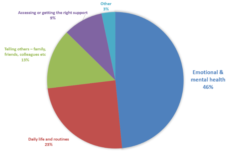 When asked about ongoing challenges, he heard loud and clear that emotional and mental health is the hardest challenge for all respondents (46%). The next biggest ongoing challenges for FL patients were daily life and routines (23%), telling others (13%), and accessing the right support (9%). During our virtual roundtable discussion with the FLF’s Super Supporters, many described long term anxiety, fear of progression, or uncertainty about the future, even during periods when the disease was stable. The mental health burden of watch and wait made many relieved to start treatment, only to find out about long term side effects further down the line.